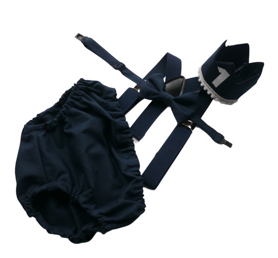 baby boy navy blue and white themed cake smash outfit nappy diaper cover suspenders bow tie boy first birthday outfit 1st birthday