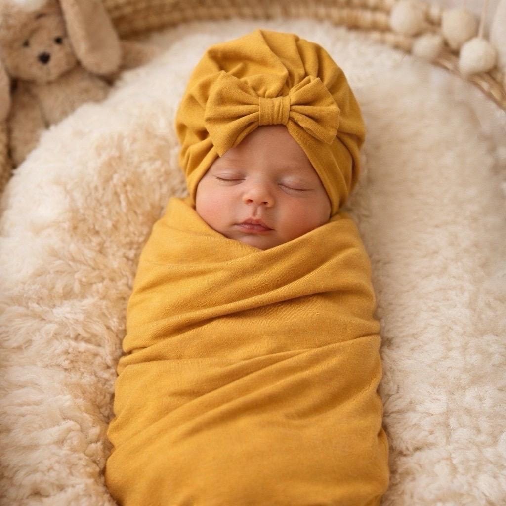 A soft and comfortable baby hat and swaddle blanket. Made out of soft 95% cotton with Lycra. A must have for a newborn photo shoot.
