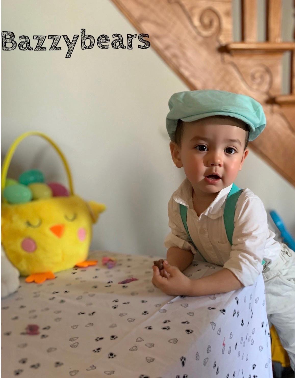 These adorable flat caps are made out of 100% cotton fabric. They are vibrant and custom made. Made to accommodate more than one age group and will grow with your little one!