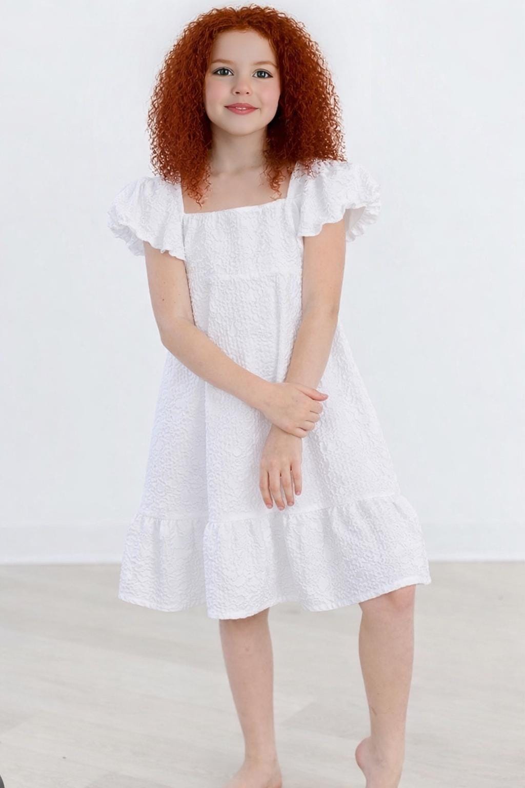 This puff sleeve twirl dress is perfect for any milestone or special occasion photos. Made from a soft embroidered flower cotton blend fabric mixed with spandex.It is comes with a beautiful floral headband or wreath. A beautiful dress for a very special little girl!