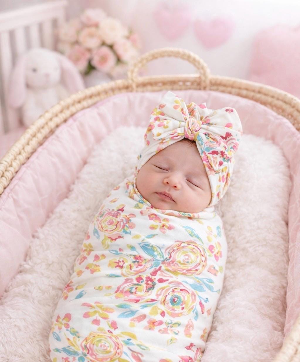 A soft and comfortable baby headwrap and swaddle blanket. Made out of soft 95% cotton with Lycra. A must have for a newborn photo shoot.