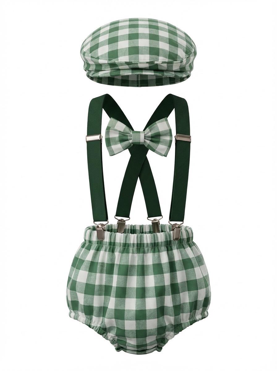 4 piece baby boy Cake Smash set: hat, suspenders, bow tie and bloomers