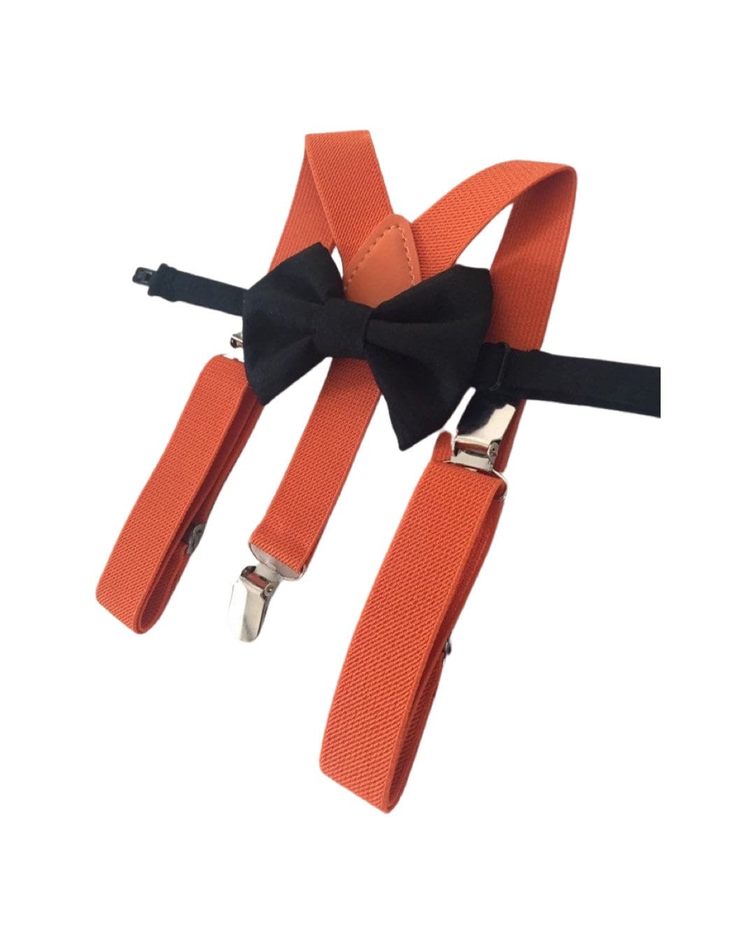 Classic orange Suspenders and trendy black bow tie- Ready to Ship!