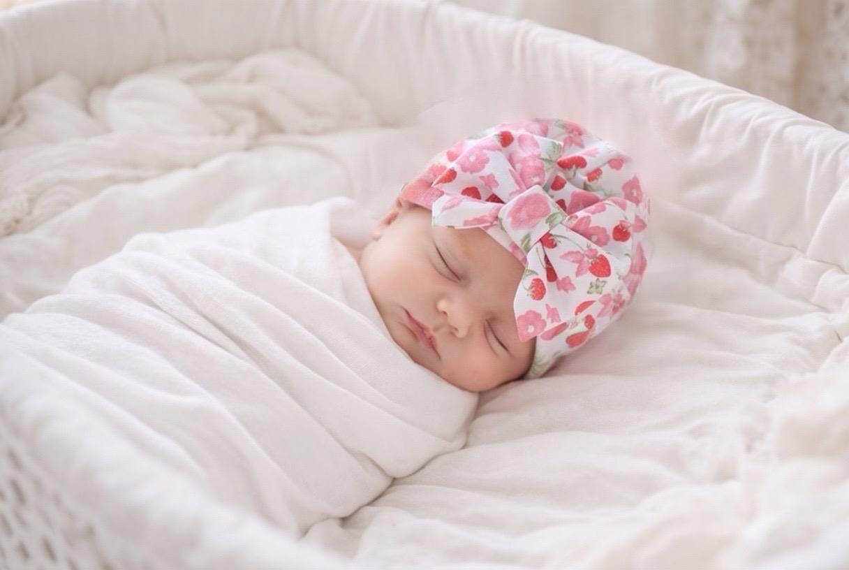 Newborn Beanie/ Hospital Hat / Girl Strawberries hat bow hat