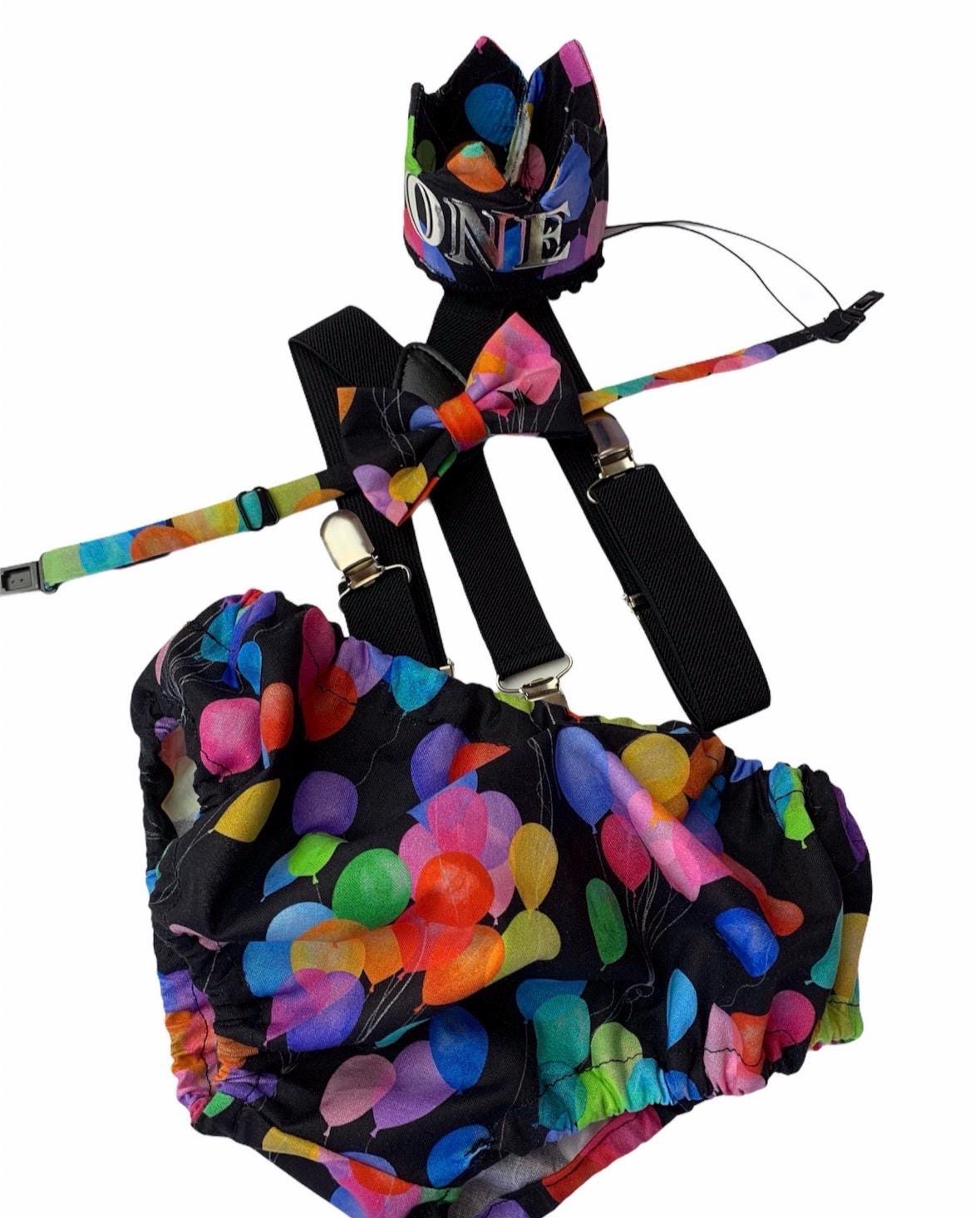 3 piece baby boy Cake Smash set: black suspenders, bow tie and bloomers